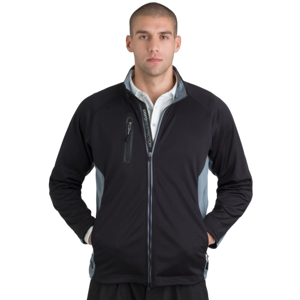 The Zero Restriction Men's Jacket is a soft alternative to traditional golf wind wear and is constructed of polyester stretch fabric with a waterproof/breathable membrane and soft fleece TechGrid inside for moisture dispersion and comfort. It features windproof, breathable fabric designed to provide freedom of movement, so your golf swing stays fluid.